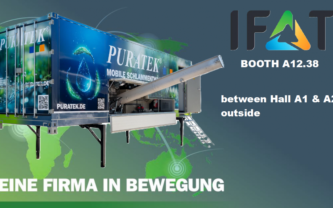 PURATEK auf der IFAT 2026 in München Vom 4. bis 7. Mai 2026 trifft sich die internationale Umweltbranche auf der IFAT 2026 in München – und PURATEK ist mit dabei! 📍 Sie finden uns am Stand A12.38 zwischen den Hallen A1 und A2 – im Schlammentwässerungscontainer.